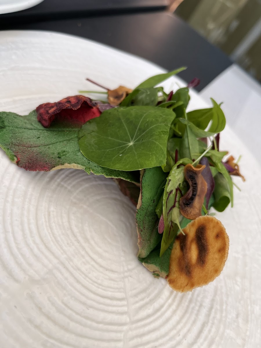 What a wonderful location. The ambiance was exquisite. I loved the tour of the kitchen, and the staff was kind, especially the Mâitre ď. They changed sommelier on us mid tasting menu, and the replacement didnt do a great job of telling us anything about the wine, which was a disappointment. More concerning were the 2 hairs I found in the food and the dirty fork I was presented with on the 4th course. The food thematically consistent with local and seasonal trends, and the plating was what I generally what I expect at a 3 star restaurant . The lobster and kiskilla, fried mullet, and white duck were memorable, the artichoke flower was a bit of a miss, but its soup with chard and foie gras helped balance the texture miss.
